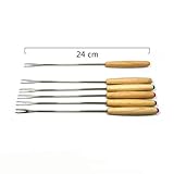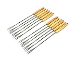 Antrader Stainless Steel Cheese Fondue Forks with Heat Resistant Oak Wood Handle for Chocolate Fountain, Melted Cheese and Roast Meat Set of 12