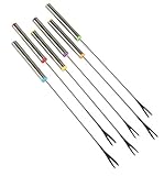 Set includes 6 stainless-steel forks with stainless steel heat resistant handles; various color on the end of stainless-steel handles for easy identification